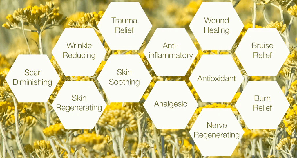 ซึ่งปัจจุบันได้ถูกวิจัยว่ามีประโยชน์ต่อสุขภาพผิว และสุขภาพจิตอย่างมาก เพราะในดอกไม้นี้มีสารสกัดที่ชื่อว่า“AREAUMAT PERPETUA” ซึ่งต้องผ่านกระบวนการสกัดแบบเฉพาะโดยวิธี Hydrodistillation (การกลั่นด้วยแรงอัดจากน้ำ) ซึ่งเมื่อทาที่ผิวแล้ว จะช่วยบำรุงผิวทันทีถึง 4 กระบวนการ ดังนี้